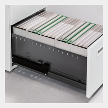 上・下段引出しは奥まで有効に引出しを利用できるダブルサスペンションレールを採用しています。