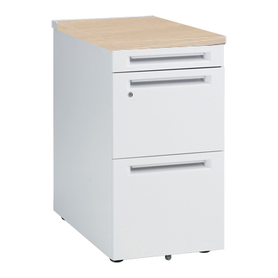 袖引き出しには、地震時などの飛び出しを防ぐ安全性を考慮したラッチ機構を採用しています。