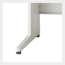 高さ微調整用のアジャスターが付いているので、ガタつきを抑え、デスクを水平に保ちます。