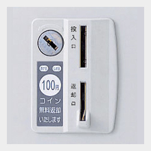 開錠時にコインが返却されるコインリターン式の錠前です。使用硬貨は通常100円硬貨1枚専用になりますが、別注対応にて10円や500円硬貨仕様に変更することも可能です。
